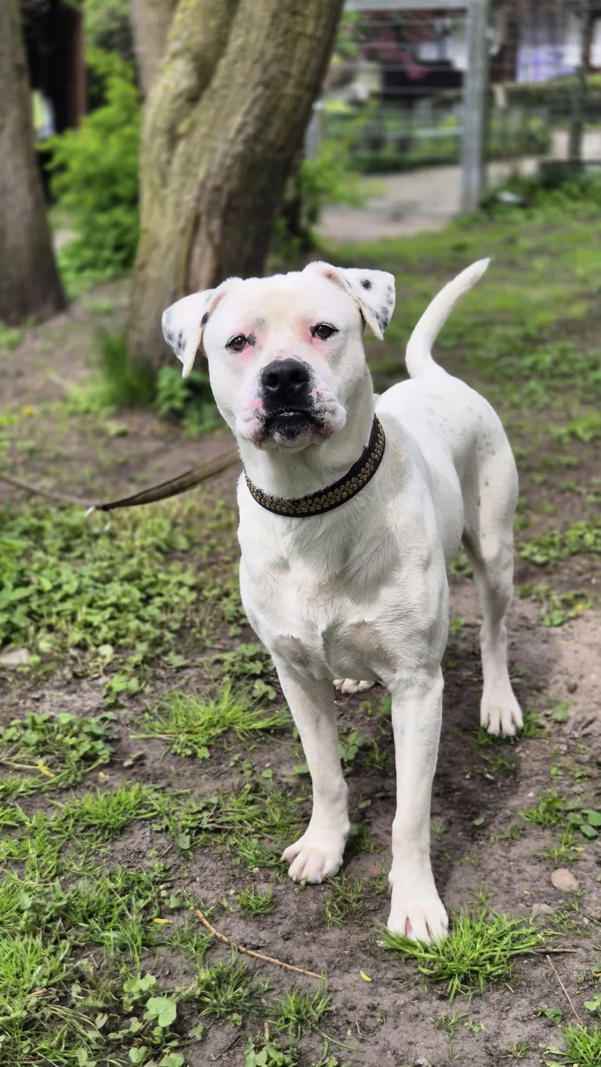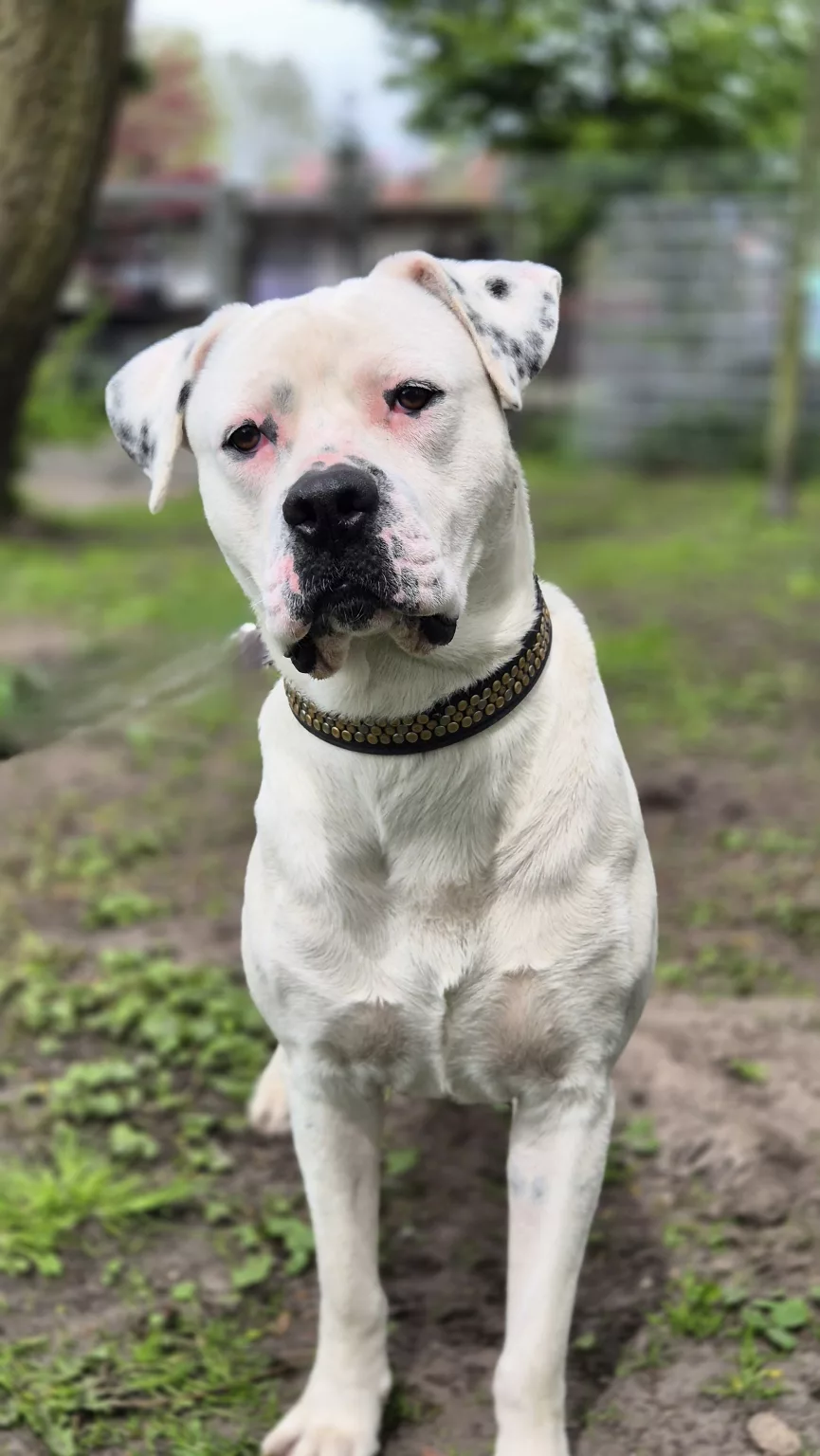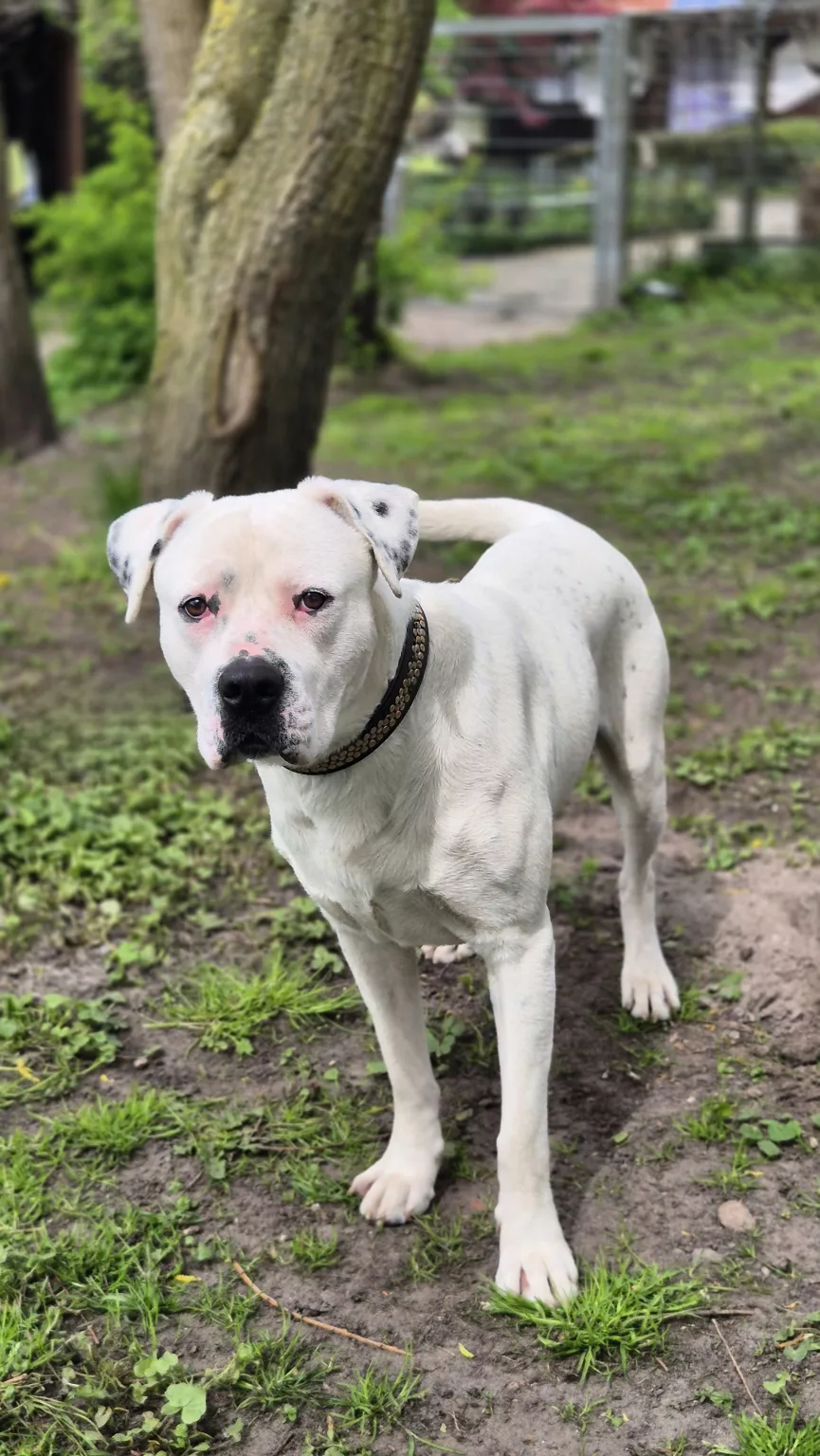 Unser Dogo Argentino Mix Rocky sucht nach seinen Menschen.