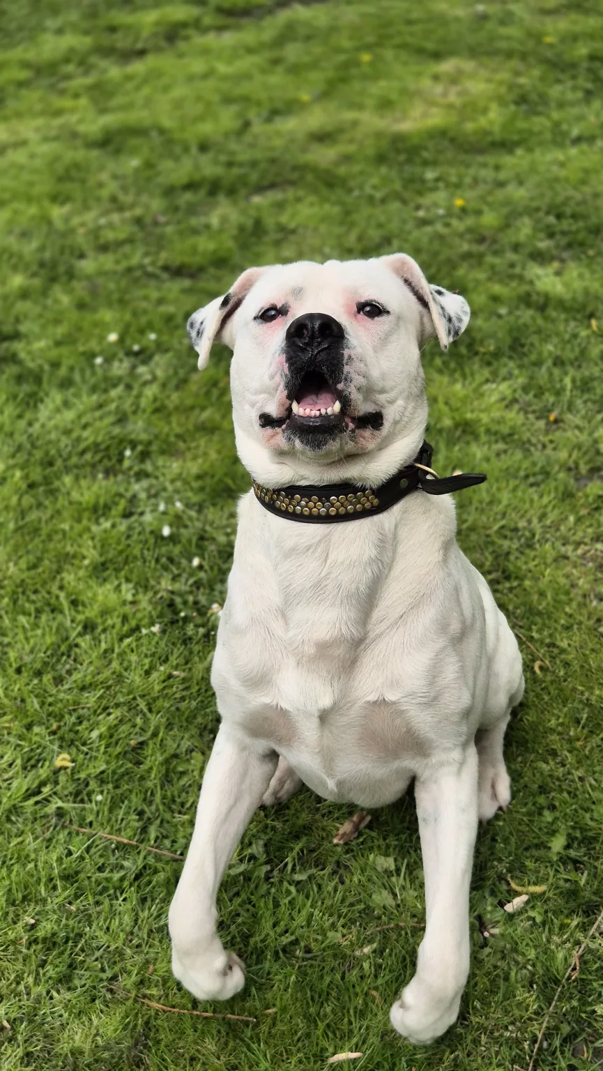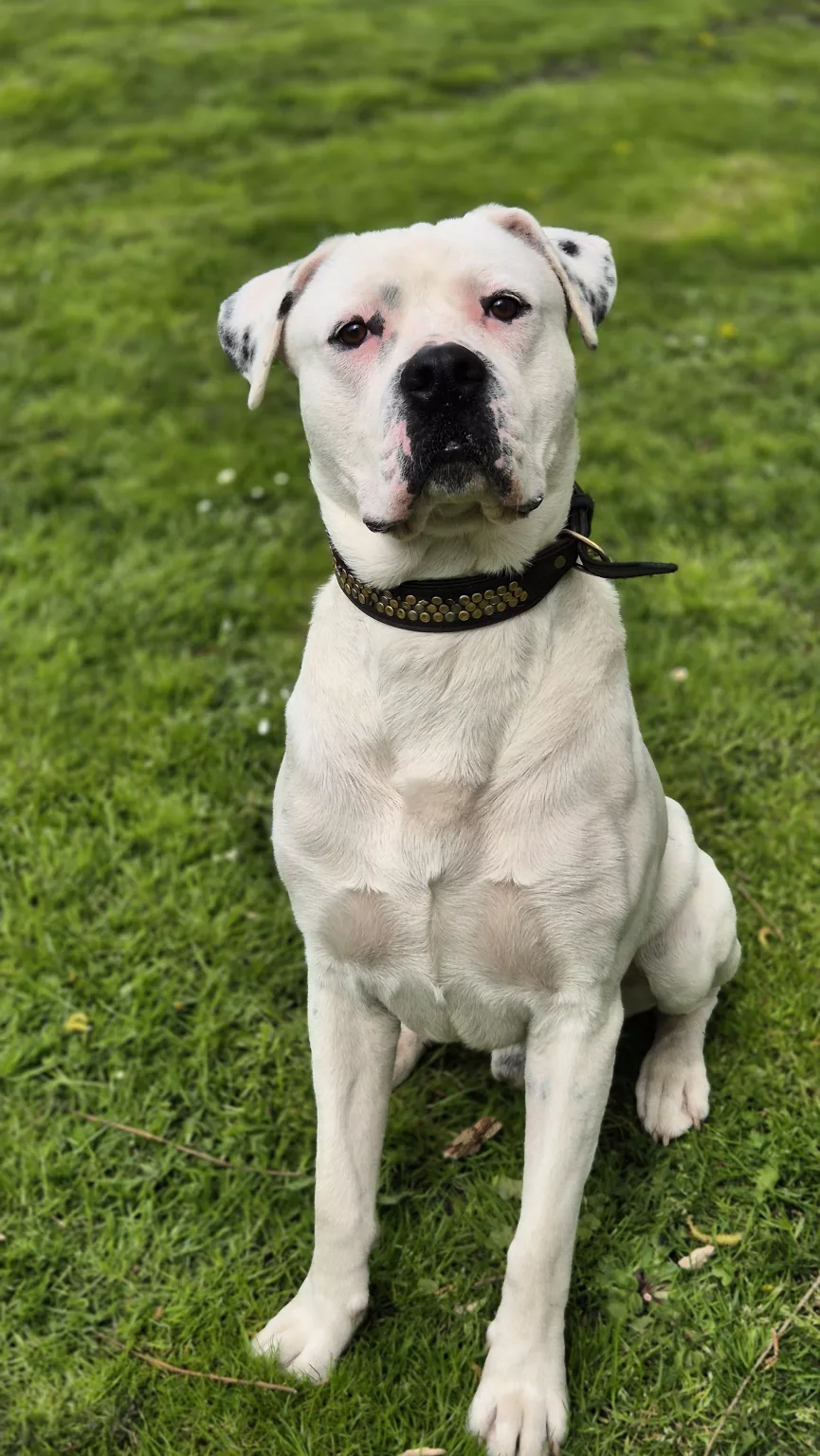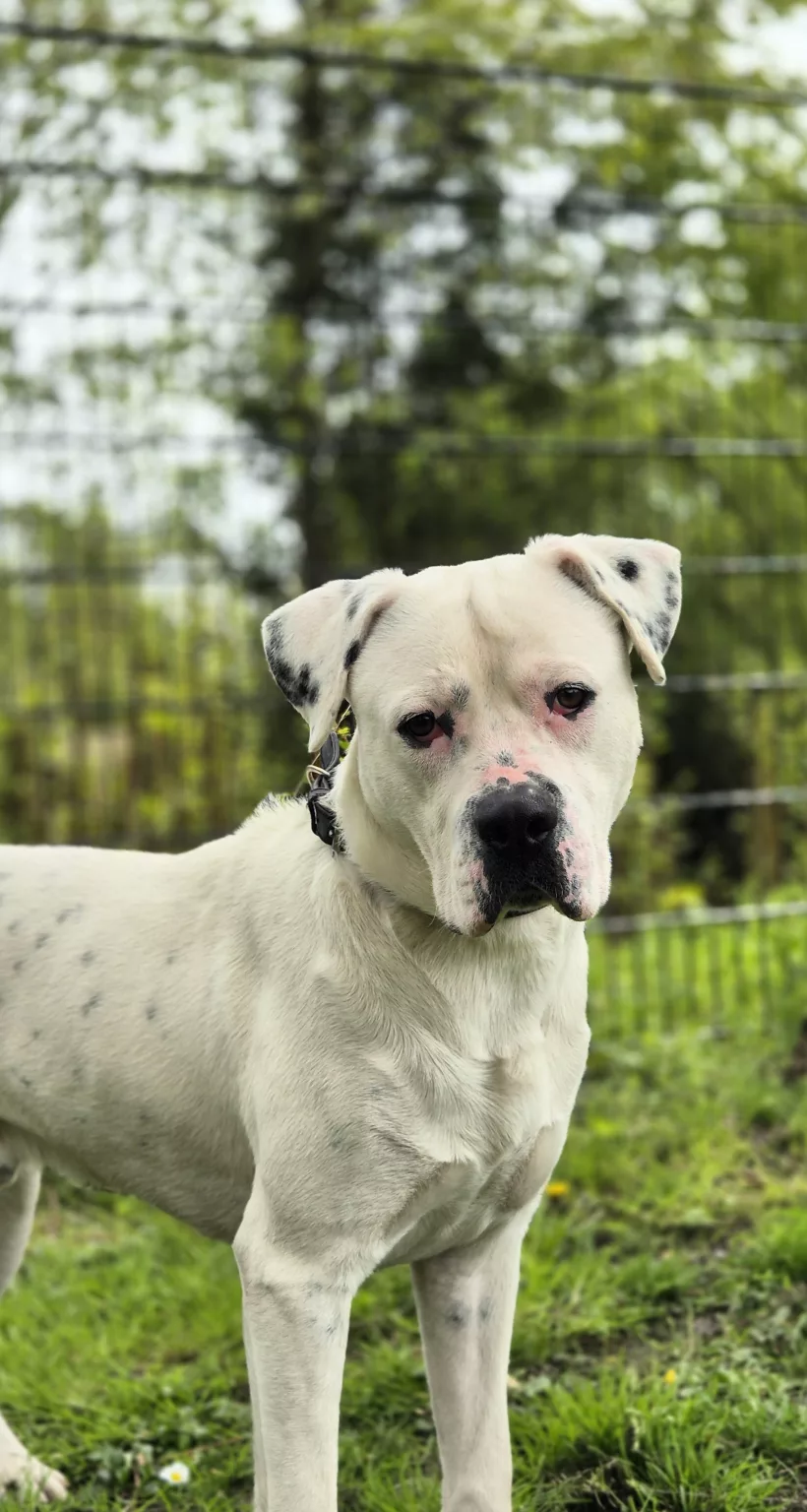 Unser Dogo Argentino Mix Rocky sucht nach seinen Menschen.