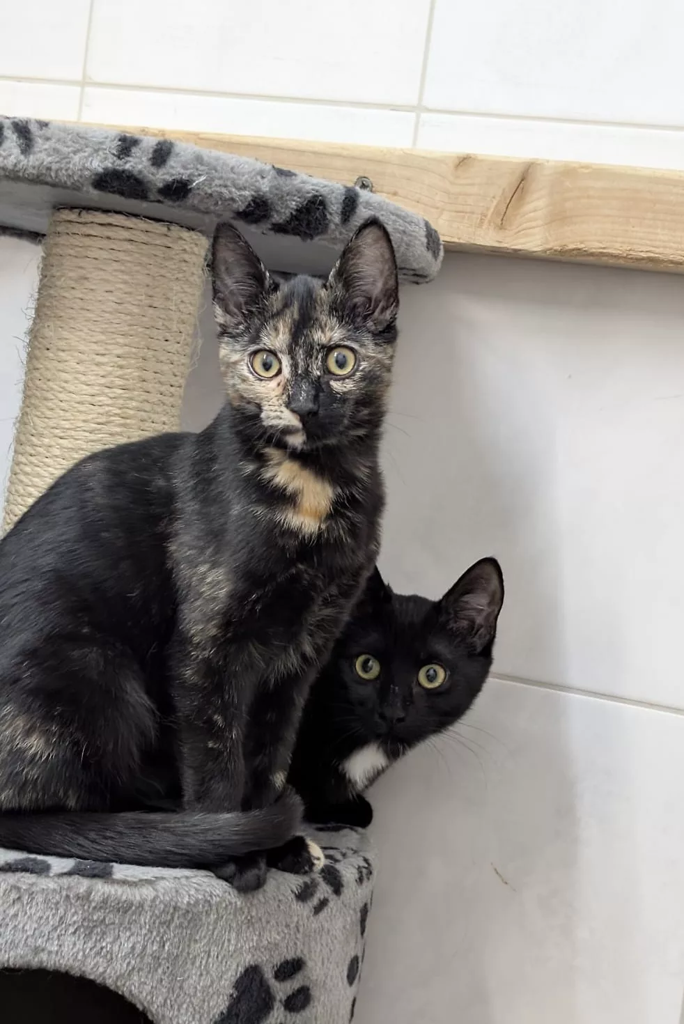 Dieses junge Katzenpärchen ist anfangs etwas zurückhaltend. Mit etwas Geduld und Einfühlungsvermögen zeigen sie jedoch schnell ihr wahres Wesen: lieb, verschmust und anhänglich. Besonders schön ist ihre enge Bindung, sie geben sich gegenseitig Sicherheit und kuscheln gerne miteinander.
