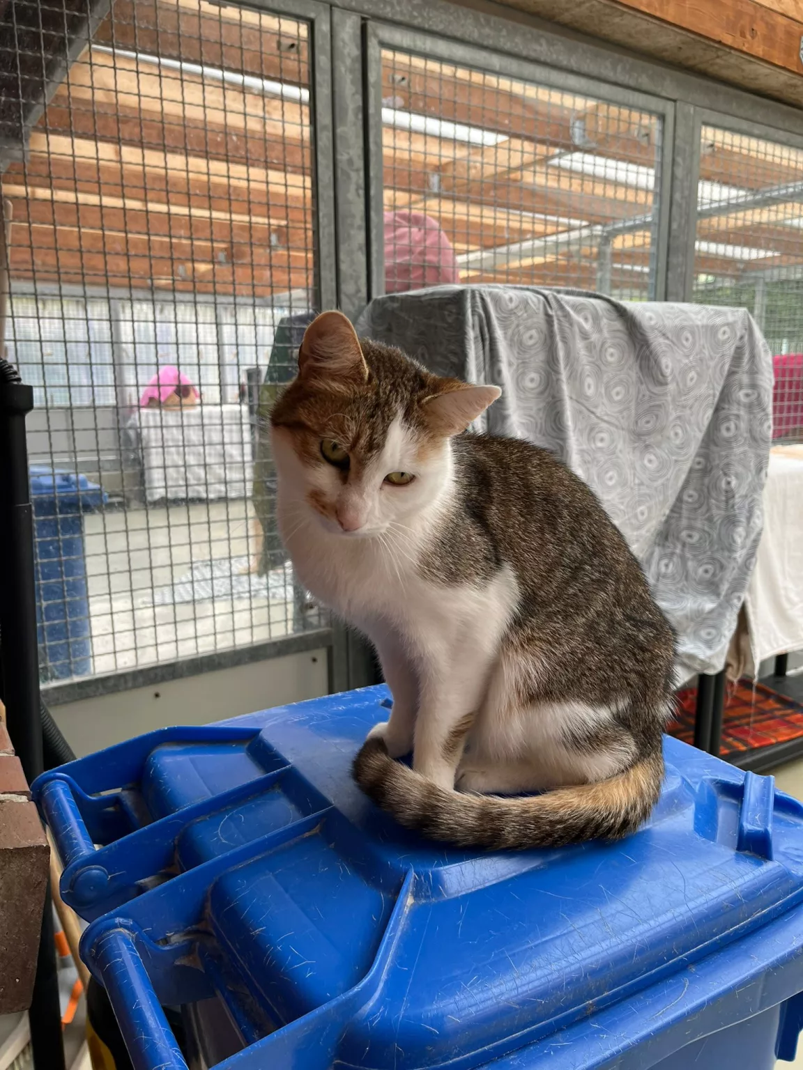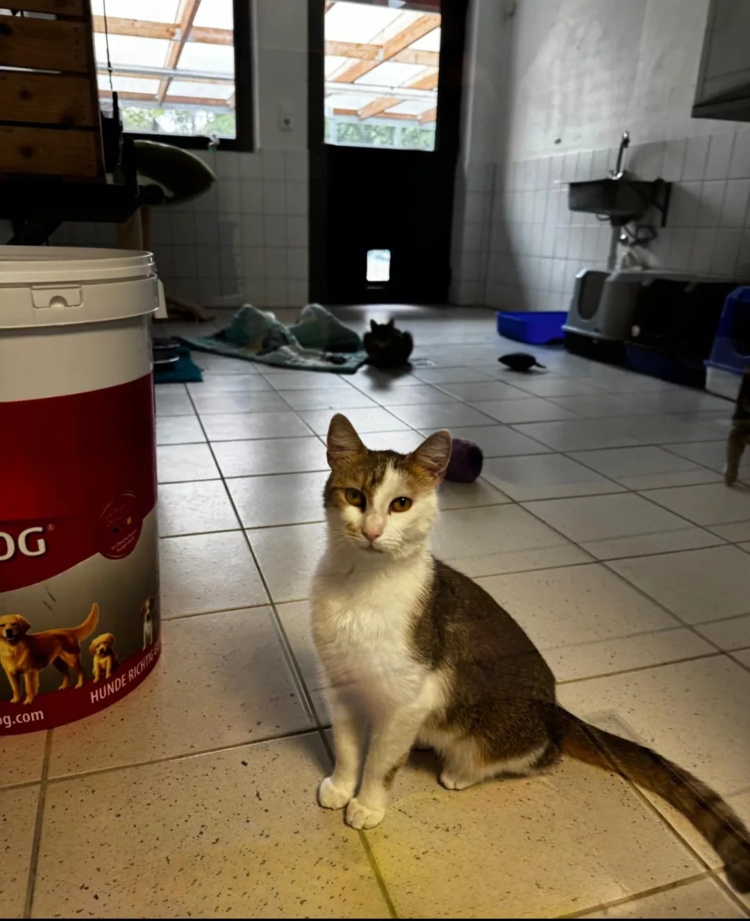 Die vorsichtige Sommer kam im Rahmen einer Sicherstellung durch das Veterinäramt zu uns und wurde mit weit über 30 anderen Katzen in einem abgelegenen Haus gehalten. Verständlicherweise hat Sommer viel Zeit gebraucht, um sich an uns zu gewöhnen, denn anfangs waren sie und ihre vier „Geschwister“ überhaupt keine Schmusekatzen. Sommer braucht etwas Zeit zum Auftauen, sie ist aber freundlich, faucht und beißt nicht. Dennoch braucht sie ein Zuhause mit erfahrenen Katzenmenschen, welche ihr in einer ruhigen Umgebung eine Bleibe für immer bieten. Wir können uns sehr gut vorstellen, dass Sommer nach der Eingewöhnungszeit von mindestens 6 Wochen auch in den Freigang gehen kann.
