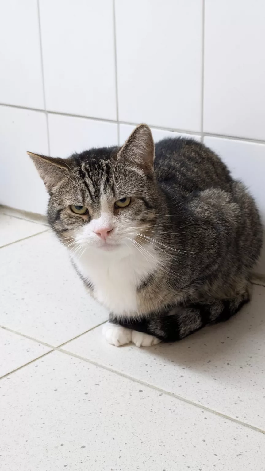 Er ist sehr ängstlich, wir rechnen daher mit einer langen Eingewöhnungszeit. Am liebsten würde Terence mit einer weiteren Katze bei uns ausziehen.