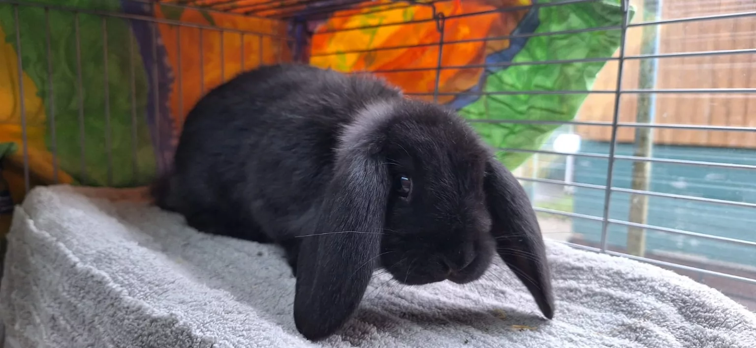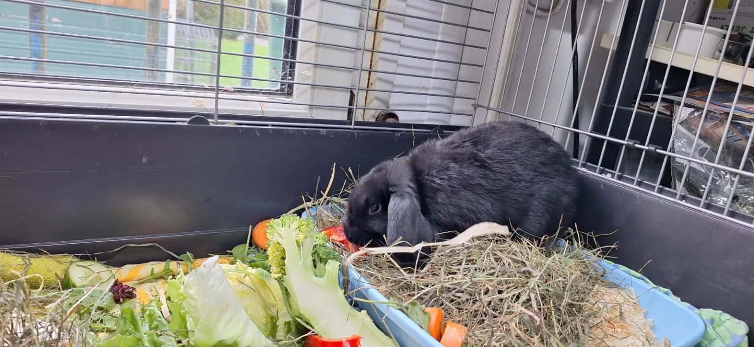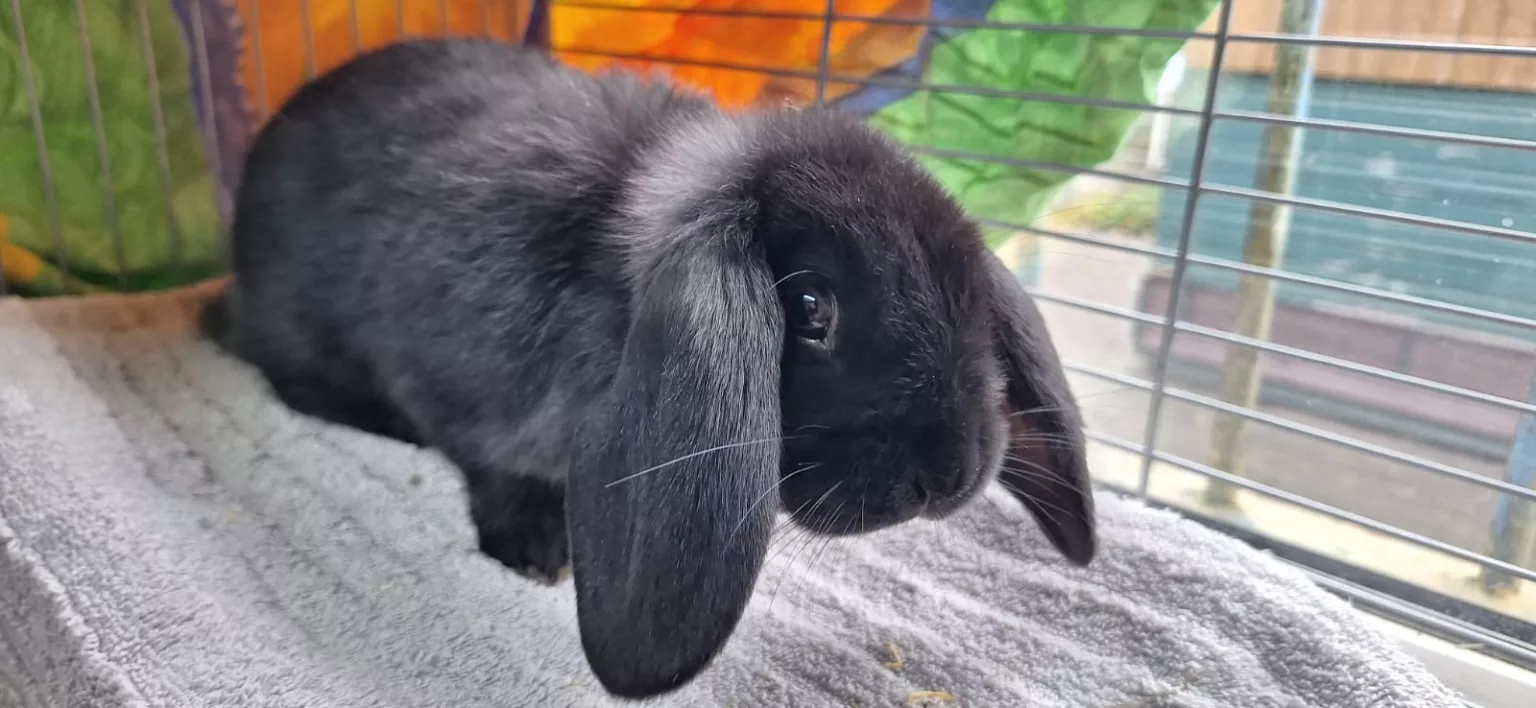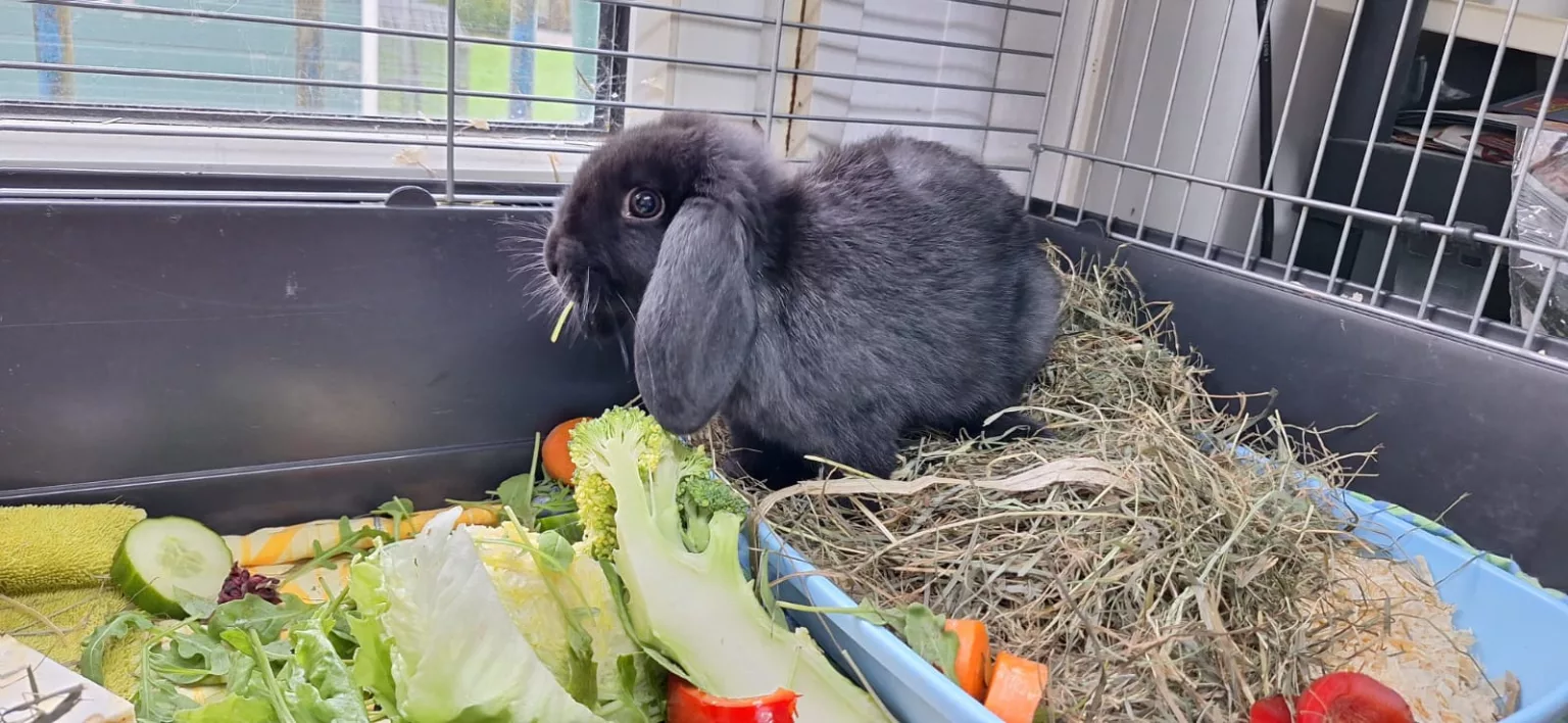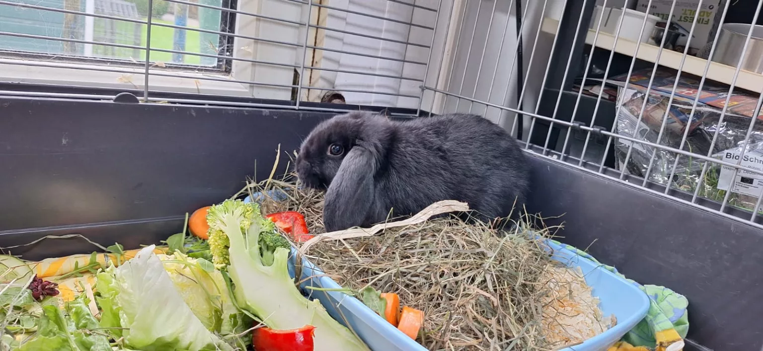 Olaf wurde Mitte November 2024 bei uns abgegeben, weil sie sich mit dem älteren Kaninchen in der Familie nicht verstanden hat.